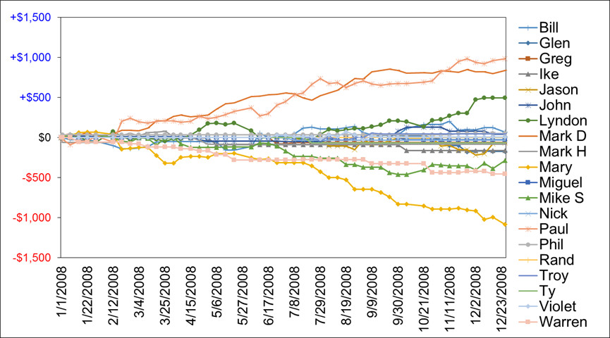 | 15‑Jan‑2008 | +$16.00 | ‑$24.00 | +$40.00 | ‑$8.00 | +$48.00 | ‑$58.00 | ‑$14.00 | |||||||||||||||